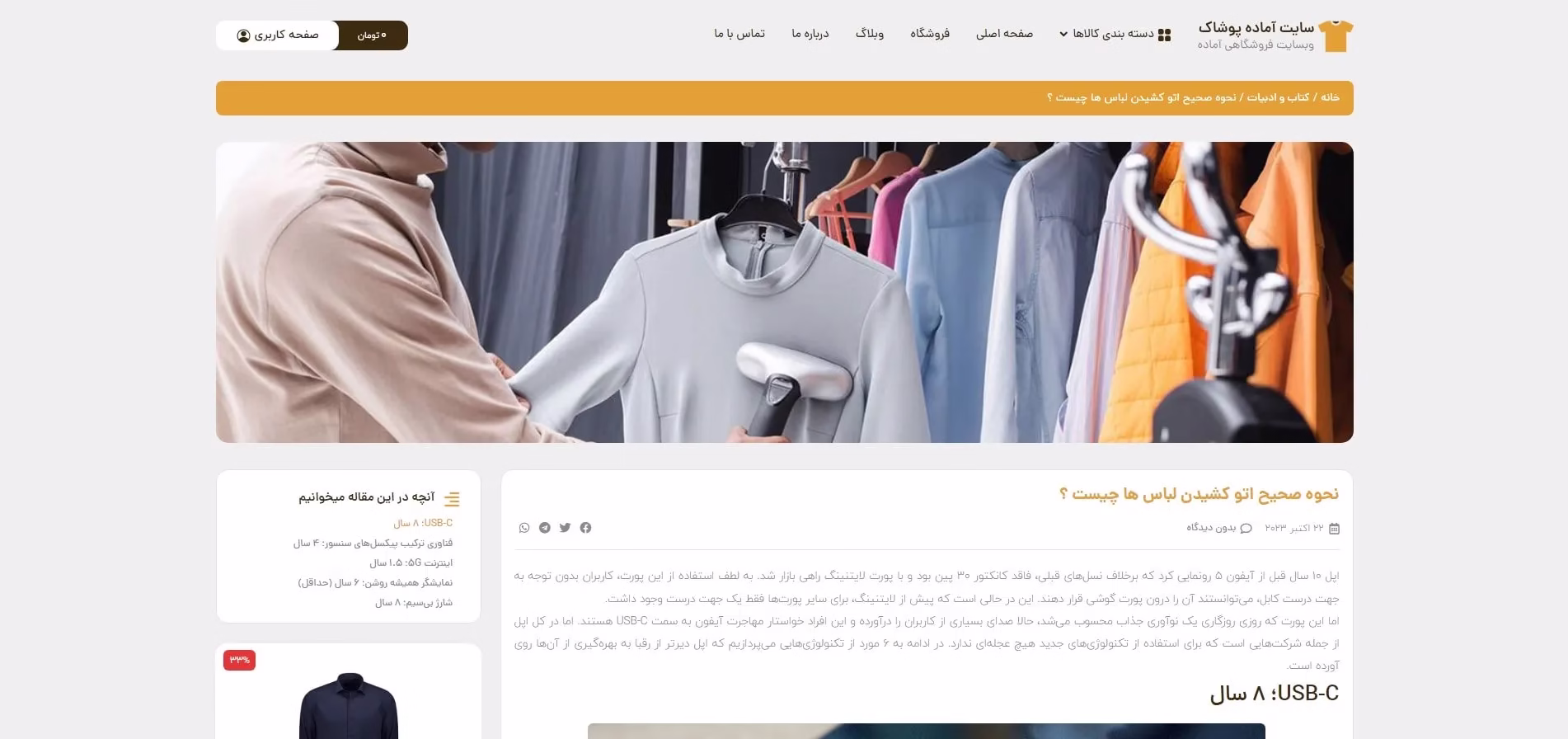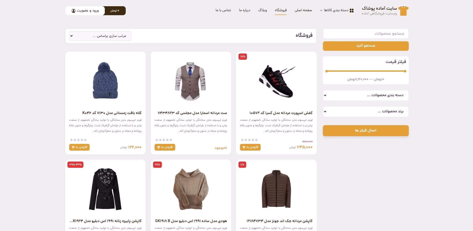 عکس صفحات مهم سایت آماده برای فروش لباس و پوشاک و…