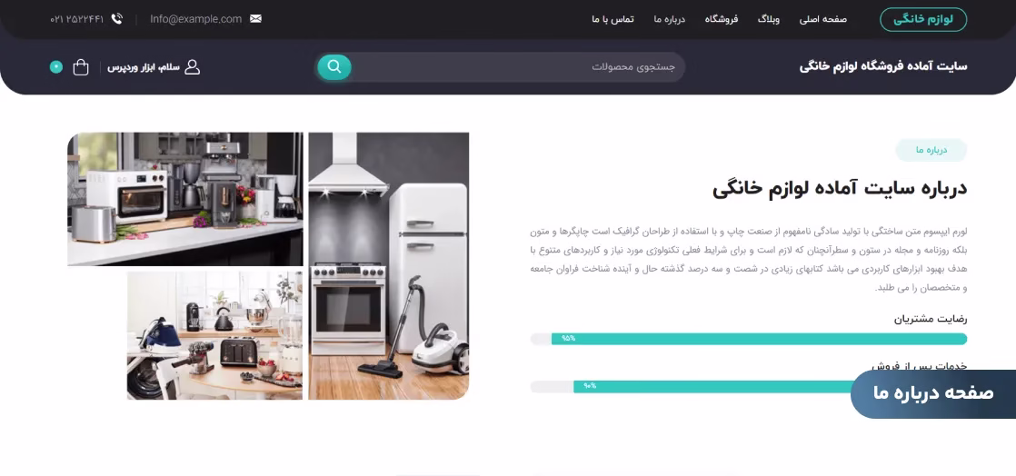 وب سایت پیش ساخته فروشگاه لوازم خانگی ، تمام آن چیزی است که به شما در ساخت یک تجارت رویایی و پولساز کمک می کند ، زیر ساخت این وب سایت حرفه ای برای ارائه محصولات شما در هر زمینه ای می تواند مناسب باشد ، کافیست فایل آنرا تنها با چند کلیک ساده نصب کنید و محتویات آنرا به دلخواه خودتان تغییر دهید